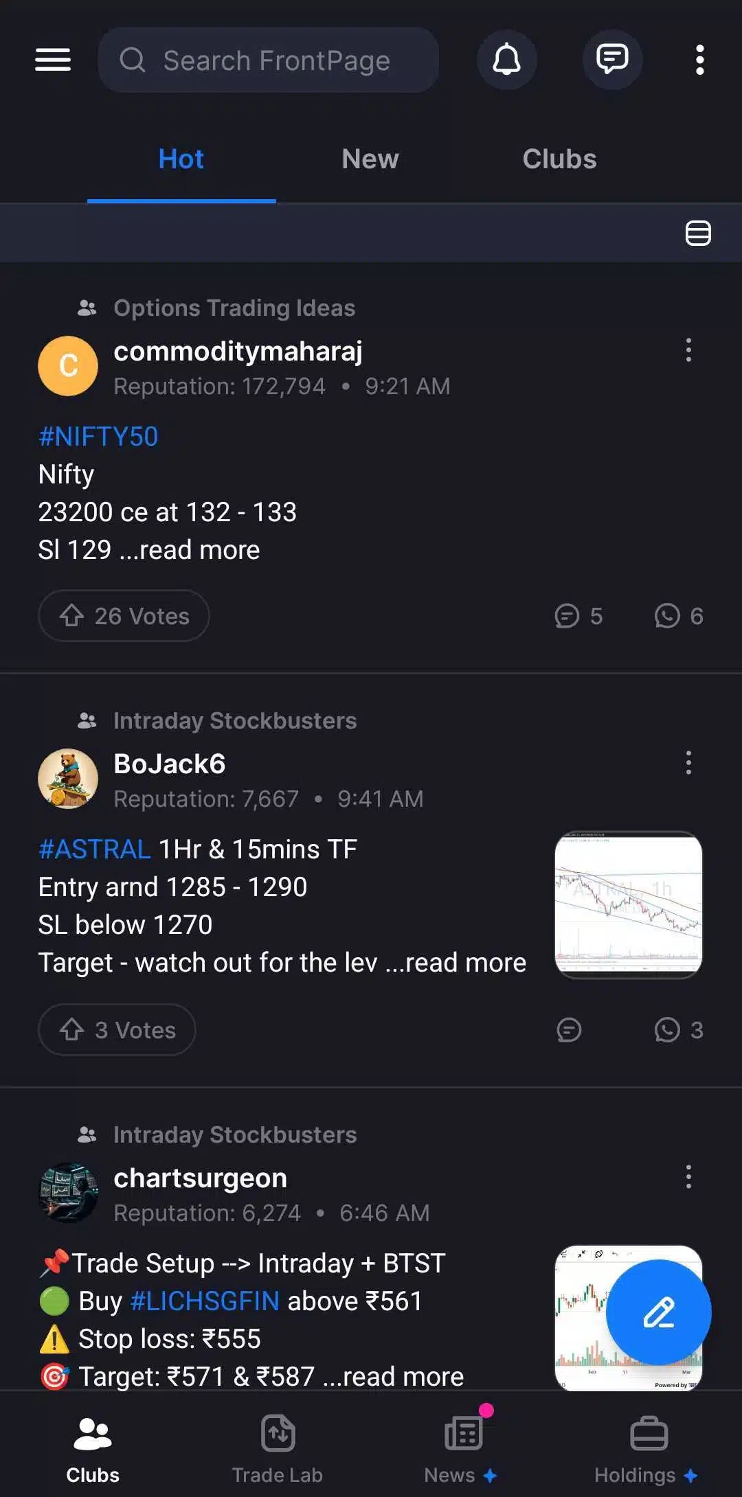 FrontPage app has stock specific forums where you can discuss your existing trades or your planned future trade with fellow stock market traders.